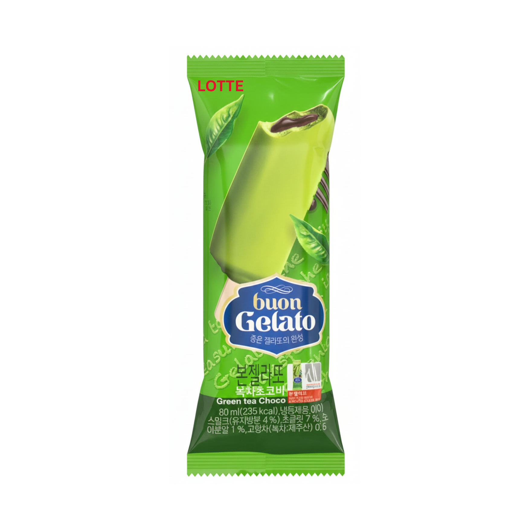 A smooth and creamy gelato-style ice cream blending the rich, earthy taste of green tea with a sweet chocolate coating. Lotte Buon Gelato Green Tea Choco offers a premium, refreshing dessert with a perfect balance of bitterness and sweetness.