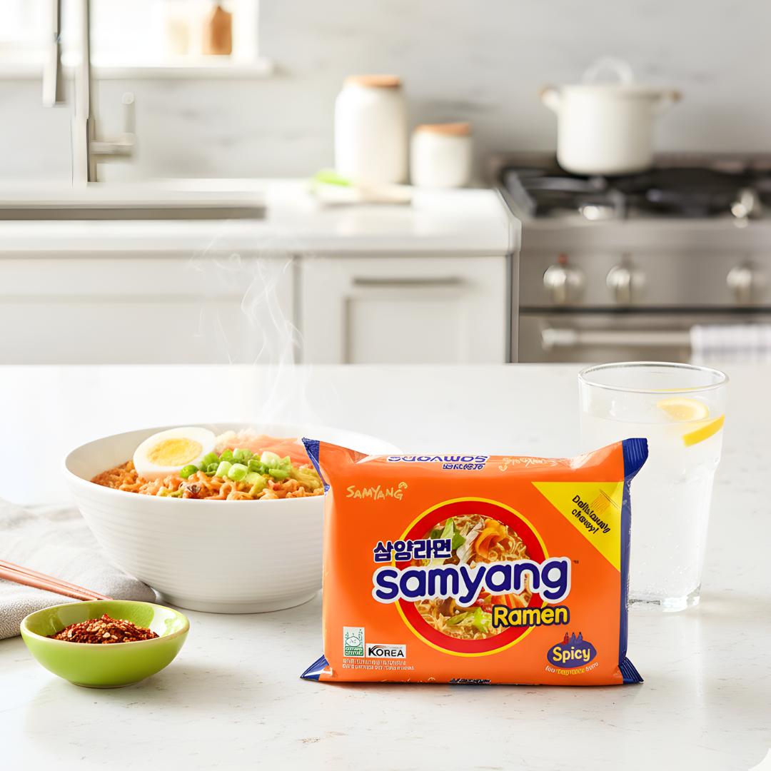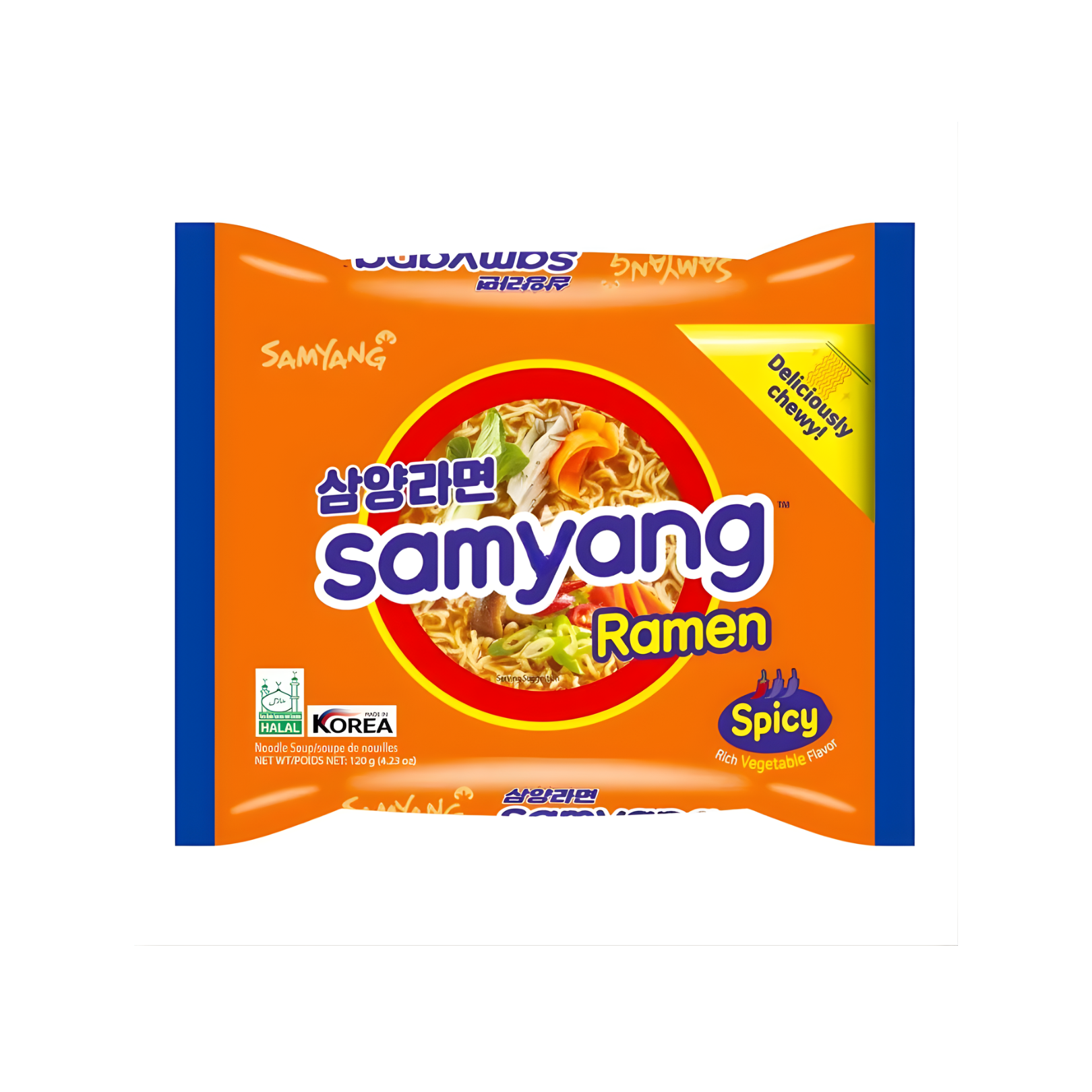 Classic Korean instant noodles with a spicy, rich vegetable flavor. Chewy noodles and bold broth make it a perfect quick meal anytime. Halal-certified.